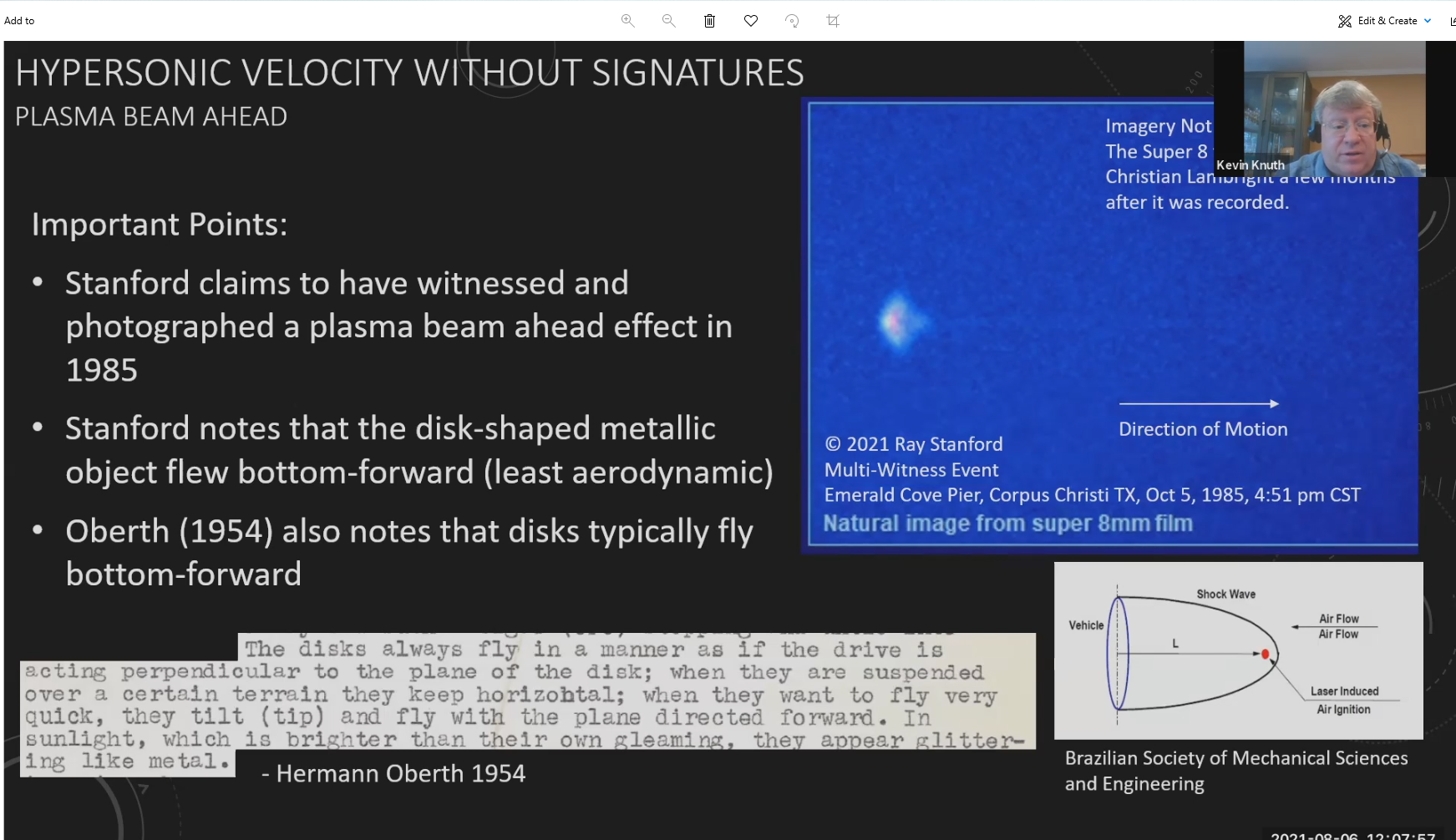 "[Kevin Knuth, Ph.D., physicist] plans on writing a scientific paper on UAP characteristics using the [October 5, 1985 Ray] Stanford image in the near future where the film and images will be put through proper and rigorous study." – "Here Is What You Need to Know About UFOs According to the AIAA Aviation Conference," by Christopher Plain, Debrief, August 20, 2021