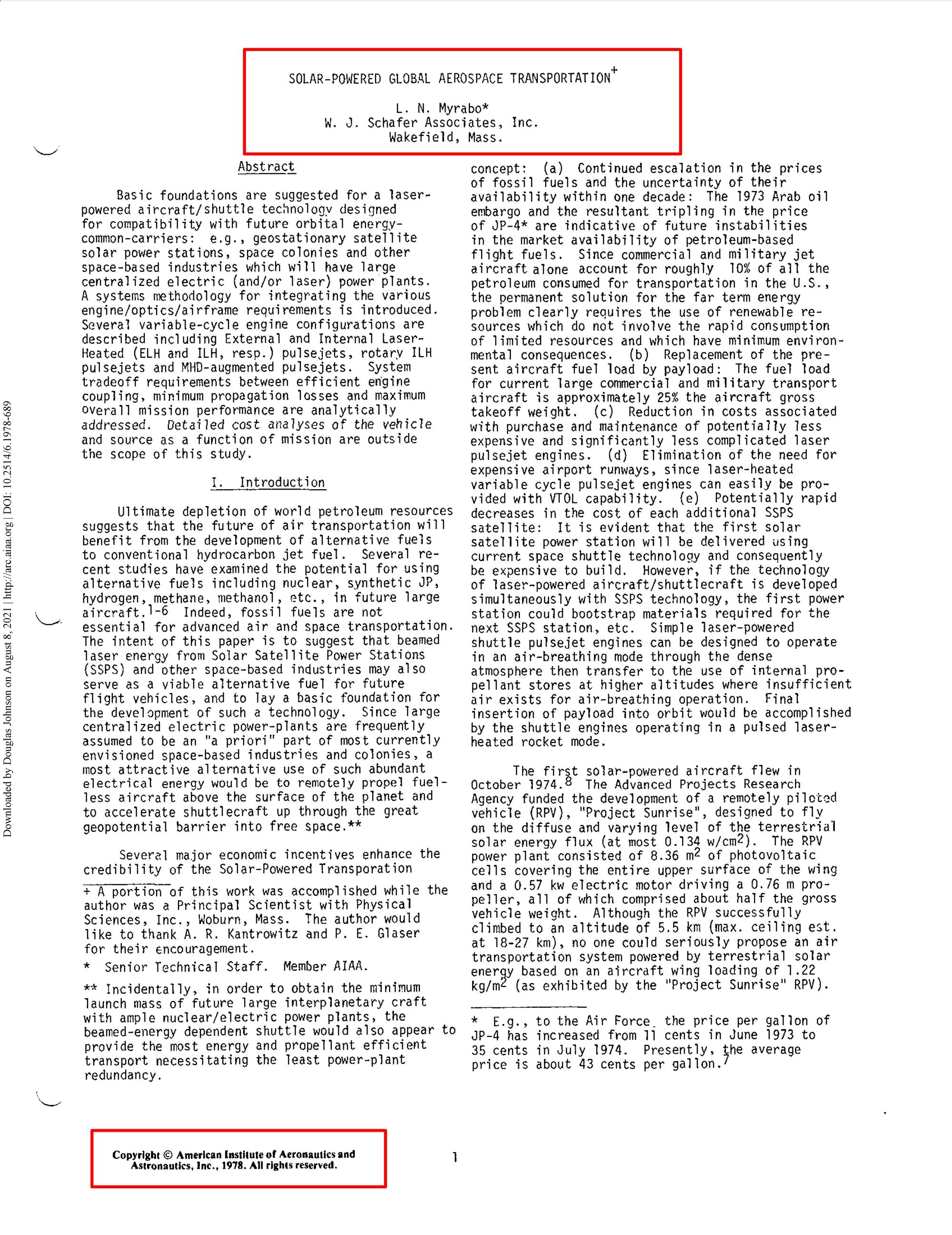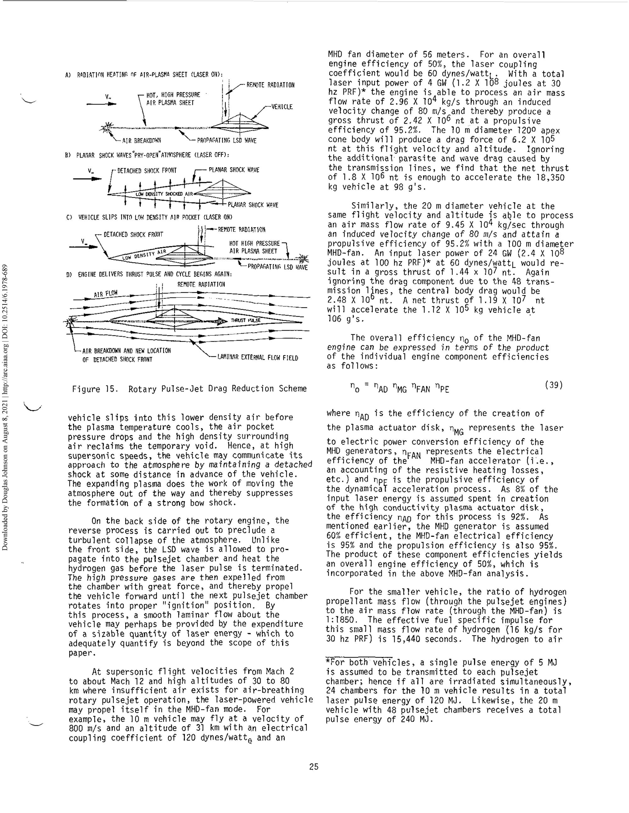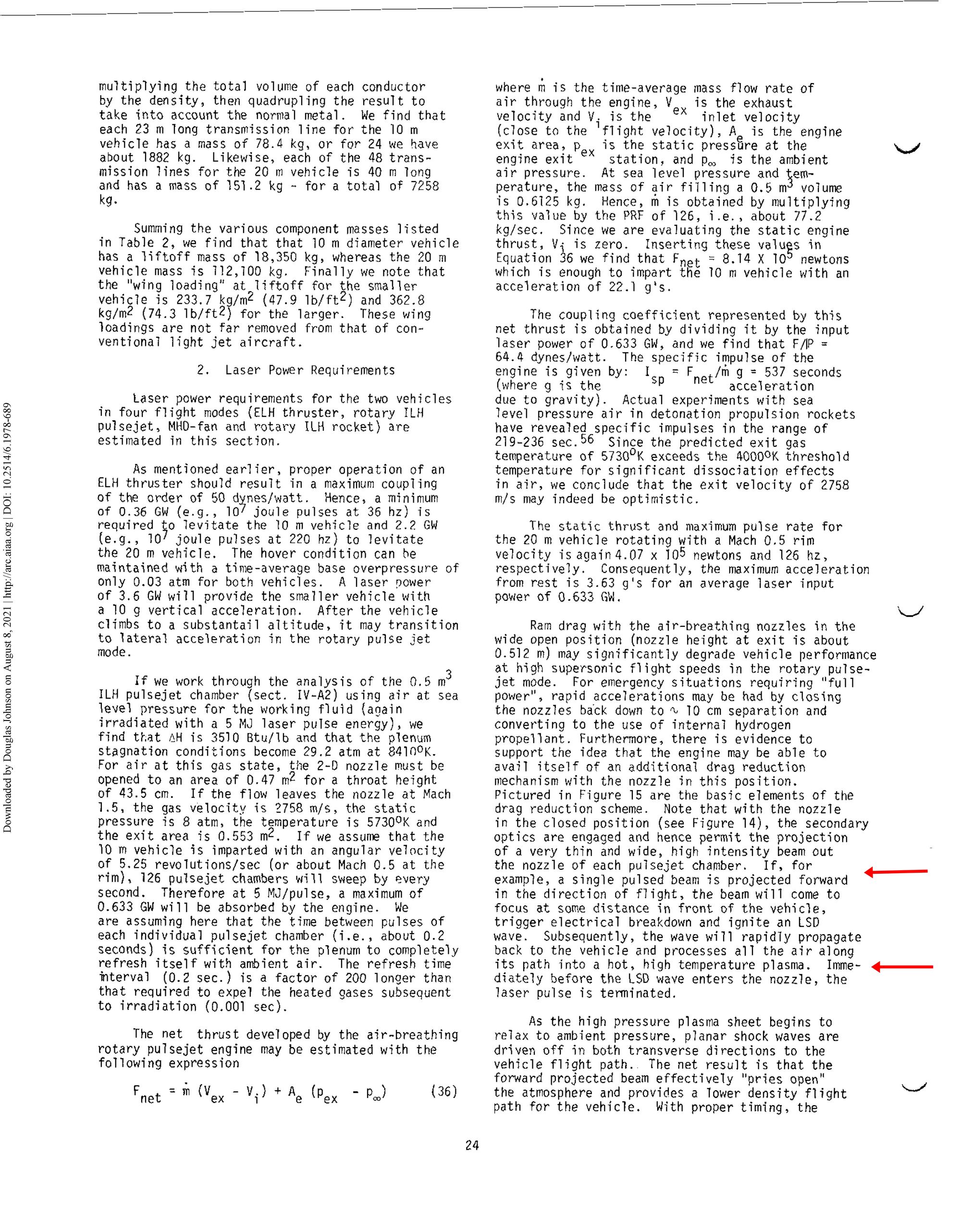 Moreover, while I claim no expertise on such matters, I have seen nothing to suggest that Myrabo's 1994 paper, or the hypersonic tunnel and other laboratory experiments that followed, have yet led to even test flights of flying devices that abandon aerodynamic shapes in favor of using directed energy beams to blaze a path through the atmosphere. However, I would welcome any documentation to the contrary. Perhaps some day people will look back and see Myrabo's 1994 paper and experiments based on it as a breakthrough, but at this date, I am not aware of evidence that provides support for that characterization.