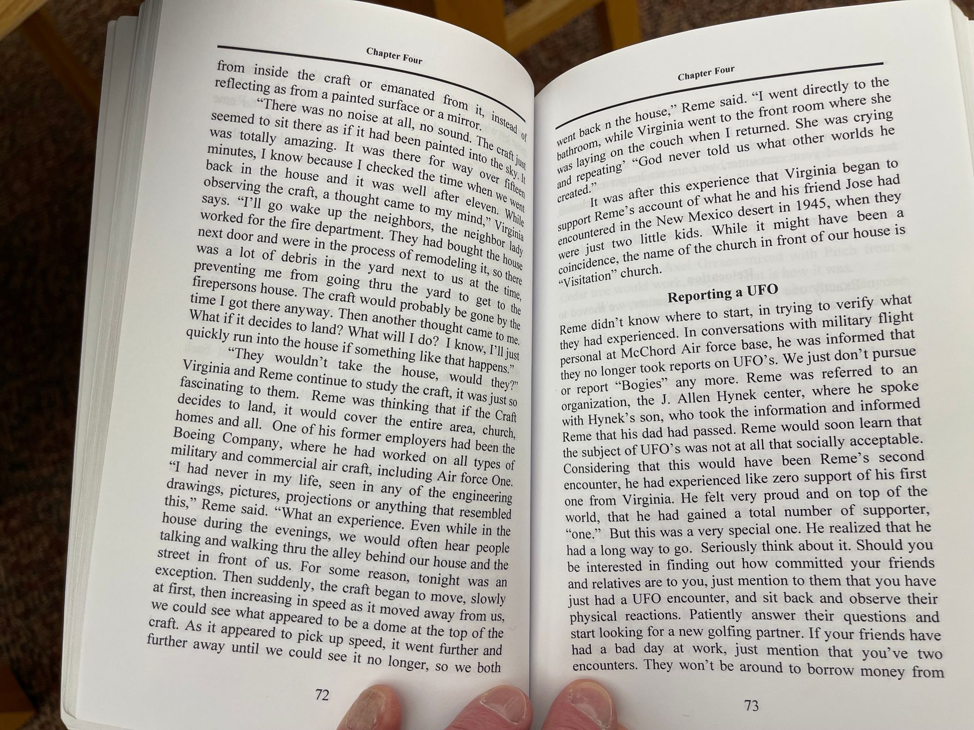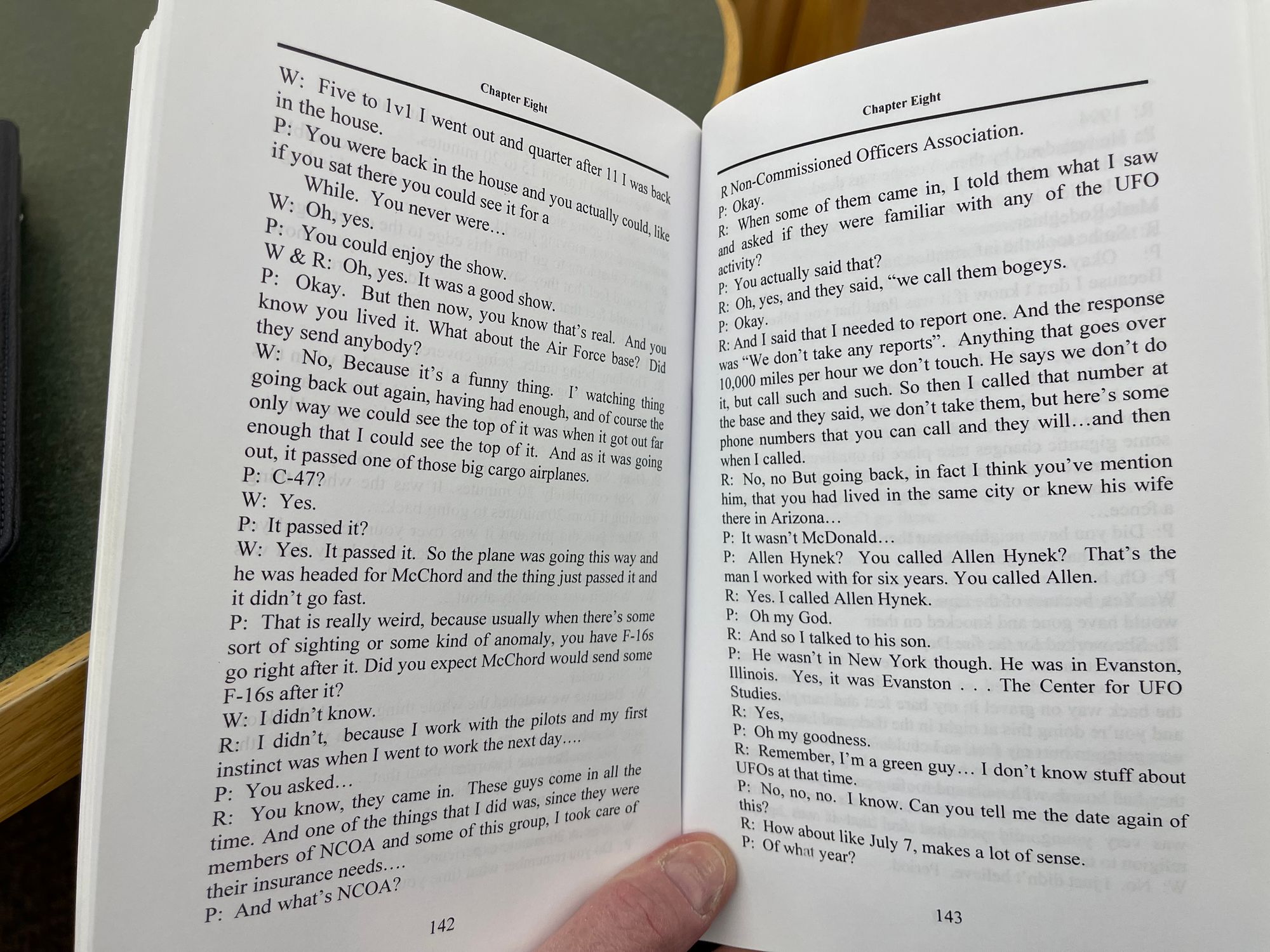 When Reme spoke to military personnel at McChord Air Force Base, they told him they weren't taking reports of "Bogies" any more, but they referred him to the J. Allen Hynek Center, where Paul Hynek took down the data, and told him that his father had died. (p. 228)