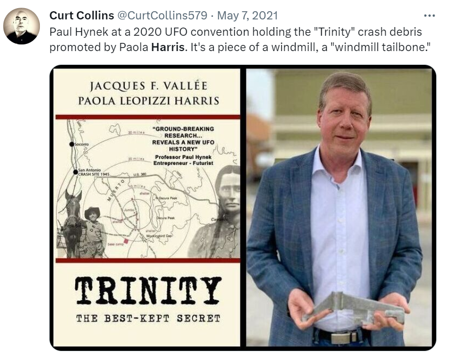 As noted above, Reme Baca said that he had promptly reported the UFO sighting to a son of the then-deceased Dr. J. Allen Hynek. In Trinity: The Best-Kept Secret (Second Edition, August 2022), Jacques Vallee and Paola Harris were more specific: