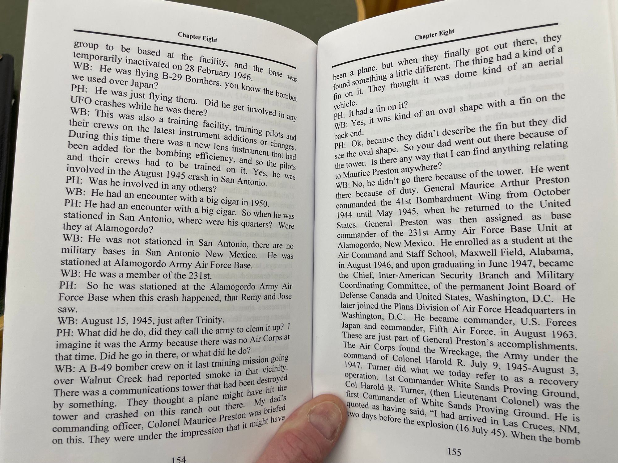 The back cover attributed that eye-popping claim to "William Brophy Jr. the son of a B-47 pilot, Lt. Col. Brophy Sr. assigned to the 231st Army Airforce unit in Alamogordo, New Mexico." The book itself contains a 10-page transcript of an interview of "William Brophy Jr." – actual name, William Paul Brophy, known in family as "Billy"– by Paola Harris, apparently conducted in 2010. For noncommercial educational and journalistic purposes, I have reproduced below that transcript in its entirety (the book itself is long out of print and very difficult to find).