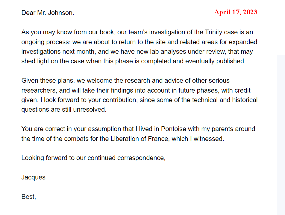 ● "Trinity: The Inconvenient Reality: A response to Douglas Dean Johnson’s 'Crash Story'," by Jacques Vallee (May 15, 2023). Original post archived in PDF here.