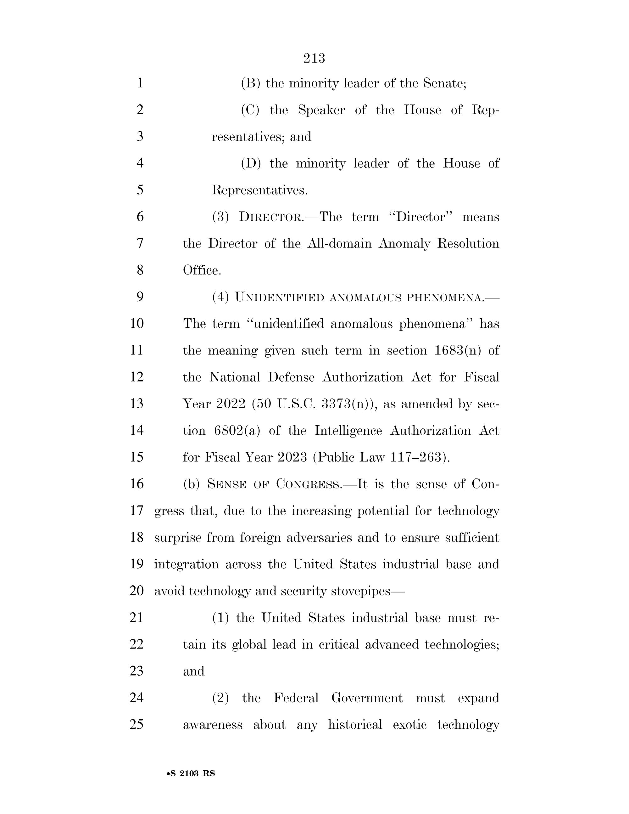 The UAP provision also contains a "Sense of Congress" subsection, which asserts that "due to the increasing potential for technology surprise from foreign adversaries and to ensure sufficient integration across the United States industrial base and avoid technology and security stovepipes...the Federal Government must expand awareness about any historical exotic technology antecedents previously provided by the Federal Government for research and development purposes."