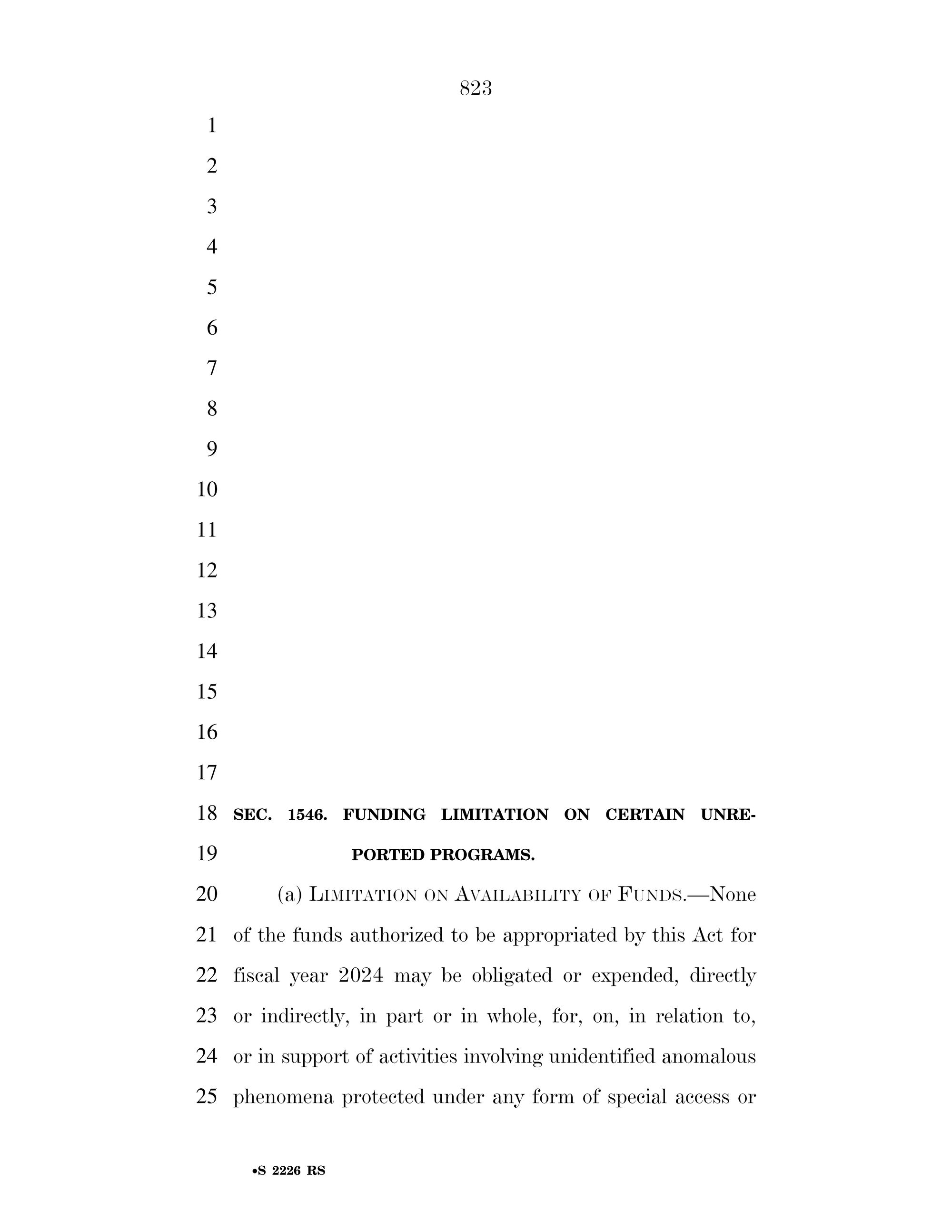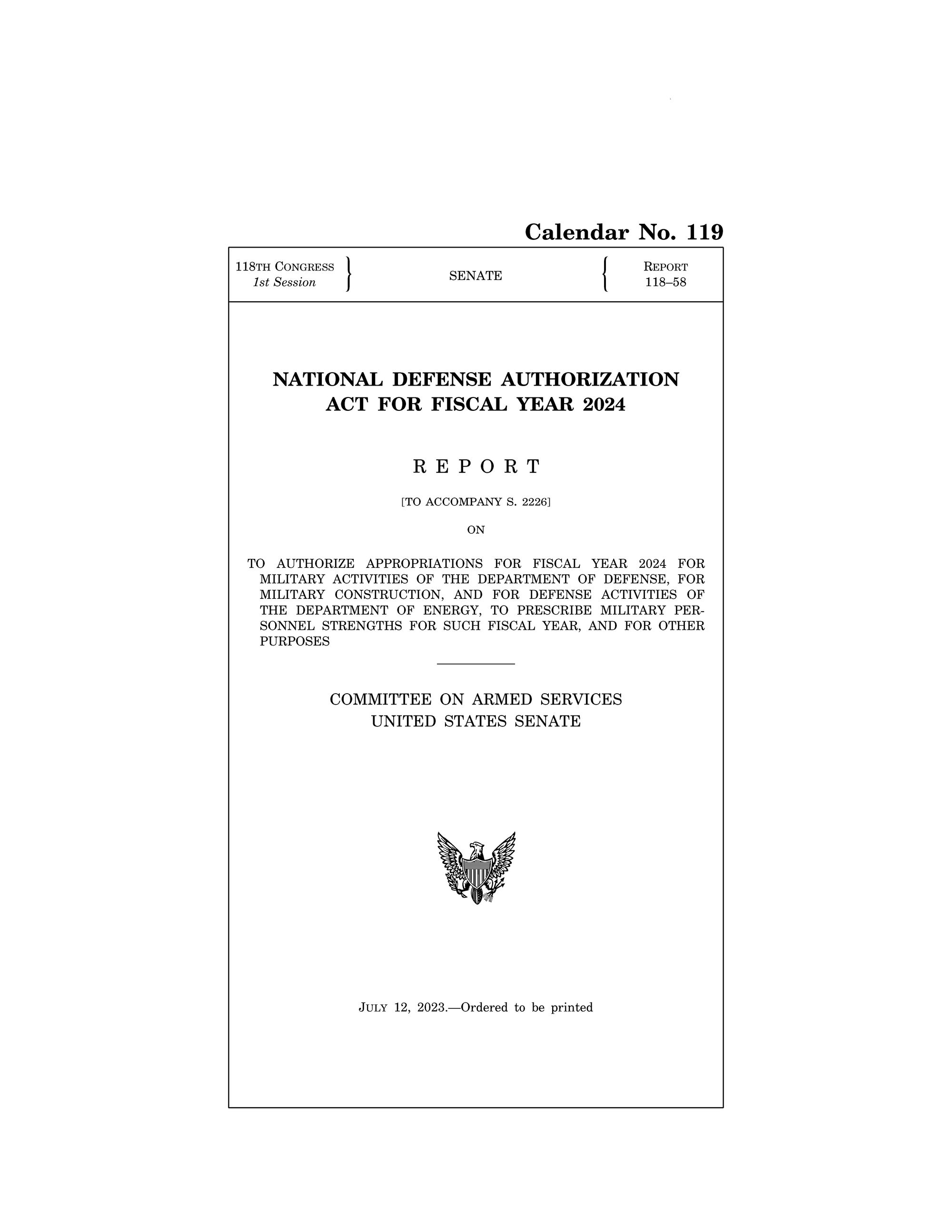 [UPDATES (July 13 and July 21, 2023): The Senate Armed Services Committee formally reported its version of NDAA (S. 2226) on July 11, 2023, making the bill text publicly available. The UAP-related provisions of S. 2226, of which Sen. Gillibrand was the leading advocate, are similar, but not identical, to those found in the IAA (S. 2103). Some of these differences might reflect substantial jurisdictional or policy differences among lawmakers, but some might also merely be reflections of minor technical issues that will be smoothed out and integrated at later stages in the legislative process. The UAP-related provisions of S. 2226 (Sec. 1546, pages 823-828) are embedded as a PDF file below. The pertinent pages are also inserted as images at the end of this article.