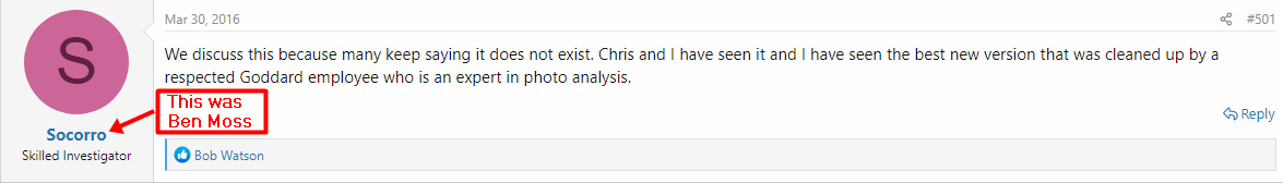 For now, I use the "dynamite shack photo" fiasco as an illustration of the some of the dynamics that appear to be at work with respect to Mr. O'Brien and a number of other Stanford acolytes-- partly because in this one case, the bottom line is no longer disputed: Stanford himself, for whatever reason, revealed that the original negative contained absolutely nothing to support the elaborate edifice of claims that he and others had built upon the image (with validation, they would have us believe, by "a respected Goddard employee who is an expert in photo analysis"), over a period of years.
