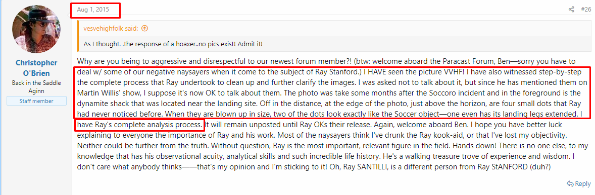On the Alien Expanse forum, one reader of the material above posed this question on September 13, 2021: "I consider Christopher O'Brien a level headed no nonsense guy who has great knowledge in this field. Why is he, after seeing Stanford's media at his home, so positive about Ray?" My response appears below.